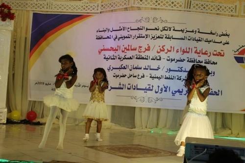 وقدمت خلال الحفل لوحات فنية ورقصات شعبية من قبل زهرات وفرقة براعم غيل باوزير، وكذلك عرض من فرقة مبارك بايعشوت للرقص الشعبي.