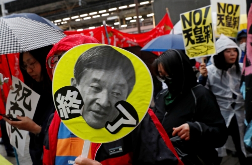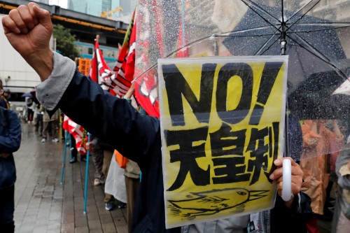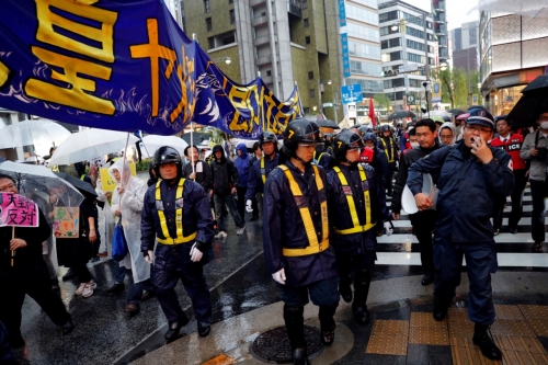 نشرت رويترز صورا ظهر فيها خروج مسيرة في طوكيو للتنديد بالنظام الإمبراطوري في اليابان، وتصدت الشرطة للمحتجين الذين خرجوا فى مسيرات بالعاصمة طوكيو.