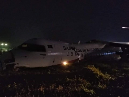 وقال المدير العام للعلاقات العامة في الشركة، شكيل ميراج، في حديث لصحيفة "The Daily Star"، إن الطائرة التي كانت تنفذ رحلة رقم "BG060"، وعلى متنها 33 شخصا، انحرفت عن المدرج خلال هبوطها في المطار، بسبب سوء الظروف الجوية.