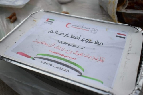 بمكرمة من سمو الشيخة لطيفة بنت محمد بن راشد آل مكتوم حرم ولي عهد الفجيرة ، نظمت هيئة الهلال الأحمر الإماراتي، مساء اليوم الأحد ، مائدة إفطار جماعية للأهالي بمديرية نصاب في محافظة شبوة ضمن برنامج مشروع "إفطار صائم" الذي تنفذه الهيئة خلال الشهر الفضيل.