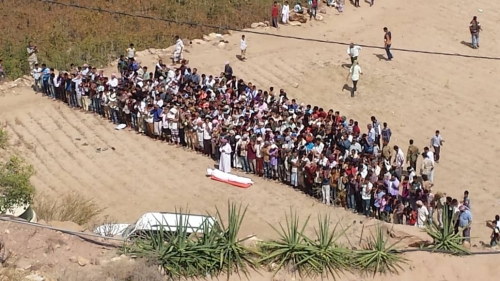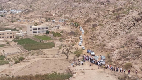 وانطلق موكب التشييع من الضالع وصولآ إلى محطة هوام، قبل أن ينطلق موكب موحد وكبير نحو مسقط رأس الشهيد قرية المضو الشعيب.