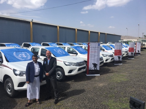 وتابع: "تقوم الأمم المتحدة بمكافأتهم.. بالأمس بخمسة عشر مليون دولار واليوم بعشرات السيارات البيك اب".