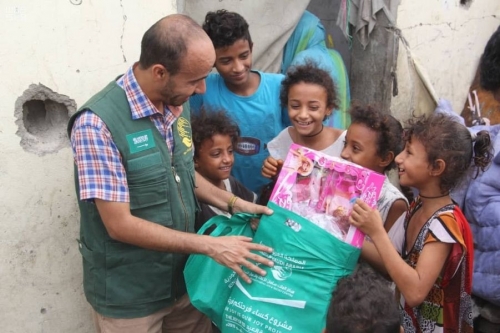 وجاء توزيع الكسوة والهدايا على الأطفال في إطار المشاريع الإنسانية والإغاثية التي تنفذها المملكة للتحفيف من معاناة المواطنين.