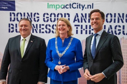 وقال بومبيو، بحسب تغريدة للخارجية الأمريكية، عبر حسابها على موقع التواصل الاجتماعي، تويتر، تابعها المشهد العربي: "الولايات المتحدة وهولندا يؤمنان بقوة ريادة الأعمال وكيف يمكن للحكومات المساعدة في تهيئة الظروف الأساسية لازدهار الأعمال".