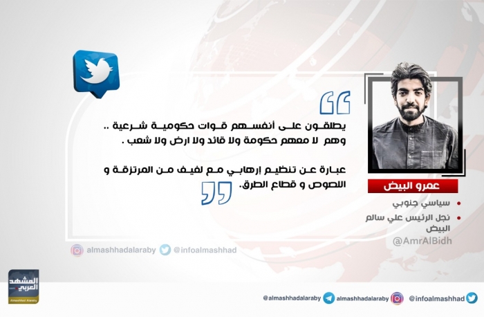 تنظيم إرهابي مع قطاع طرق.. نجل البيض يشن هجوما على حكومة الشرعية