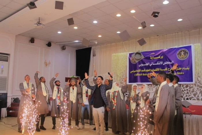 برعاية ودعم من المجلس الانتقالي الجنوبي، أقامت كلية الاقتصاد بجامعة عدن، اليوم الثلاثاء، حفل تخرج دفعة "رواد النهضة السياحي" قسم اقتصاد سياحي.