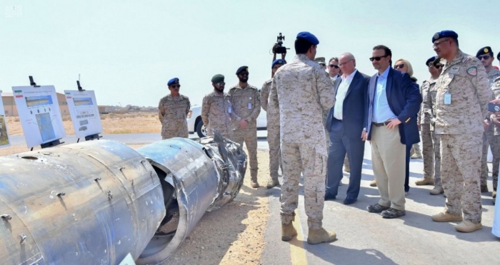 وقدم المتحدث الرسمي باسم قوات التحالف العقيد الركن تركي المالكي، عرضاً تطرق خلاله للأدلة المادية المتعلقة بالأسلحة الإيرانية التي استخدمتها المليشيا الحوثية المدعومة من إيران في استهداف المدنيين والأعيان المدنية بالمملكة واستخدامها في تهديد الأمن الإقليمي والدولي.