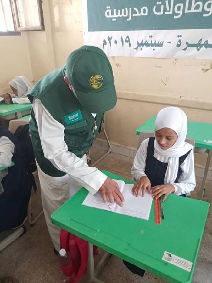 وزع مركز الملك سلمان للإغاثة والأعمال والإنسانية مساعدات على عدد من المدراس بمديرية الغيضة في محافظة المهرة.