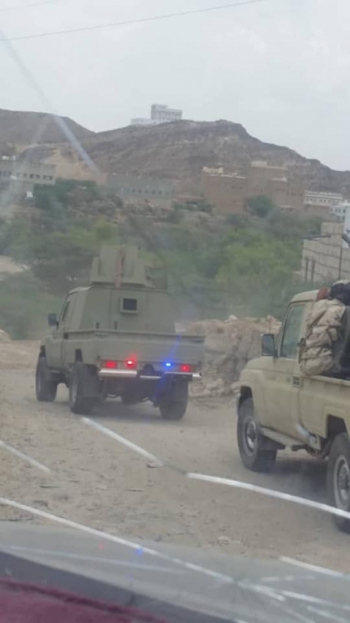 وأظهرت الصور، توجه أطقم عسكرية تابعة للشرعية من محافظة شبوة باتجاه أبين، لكن المفاجأة في رفعها أعلام تنظيم القاعدة.
