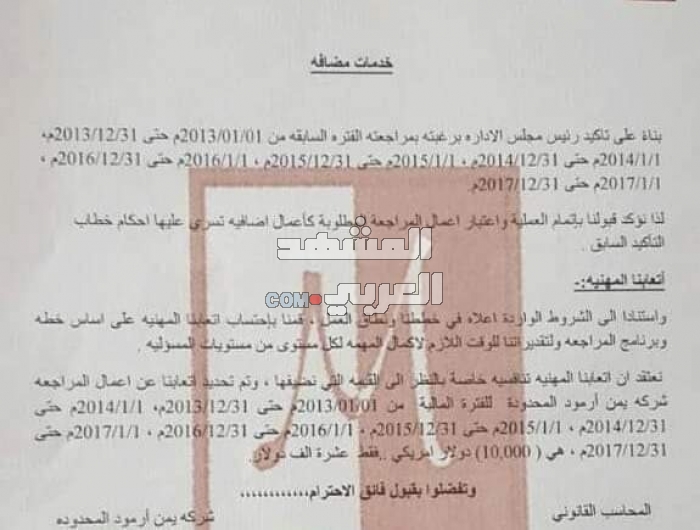 كما كشف المصدر القانوني أن القيادي الحوثي نهب عشرة ألاف دولار من أموال شركة" يمن أرمود" بحجة مراجعة حسابات الشركة للسنوات الماضية، في حين أن ذلك ليس من اختصاصه، وليست ضمن مهام الحارس القضائي الذي عين نفسه رئيسا لمجلس إدارة الشركة المنهوبة .