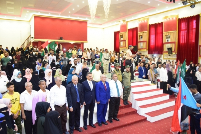 وجرى الاحتفال بحضور أحمد حامد لملس الأمين العام لهيئة رئاسة المجلس الانتقالي الجنوبي، وفضل محمد الجعدي مساعد الأمين العام، والدكتور عبدالناصر الوالي عضو هيئة رئاسة المجلس الانتقالي، وعدد من مدراء مكاتب التربية والتعليم في العاصمة عدن.