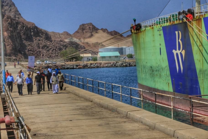 وصلت باخرة الوقود الإماراتية "بي دبليو كورن بورج" فجر اليوم الأحد إلى رصيف ميناء الزيت في منطقة البريقة بالعاصمة عدن.