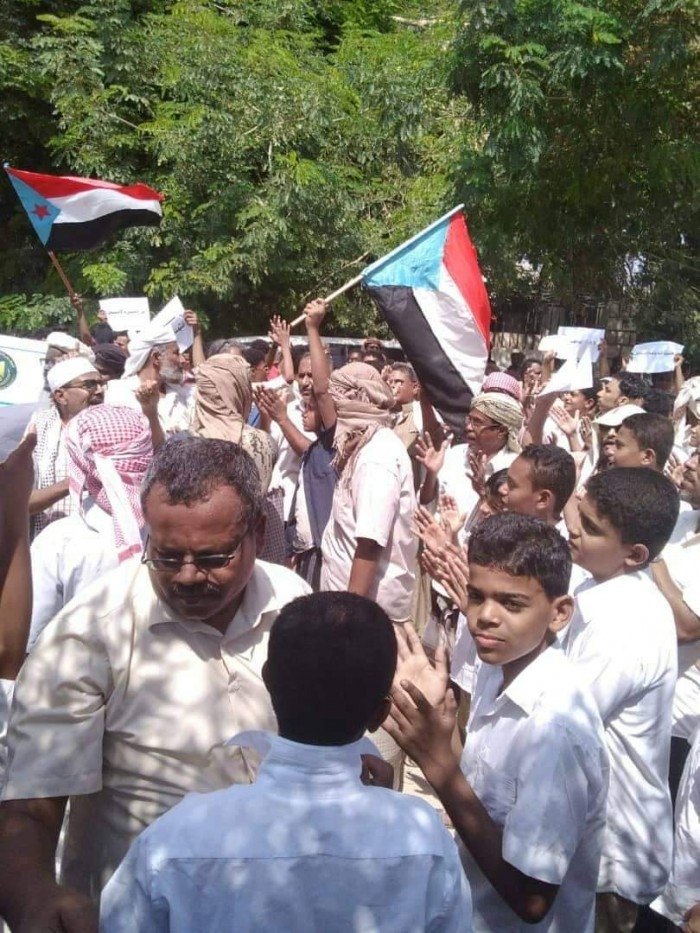 وجدد المشاركون رفضهم لمداهمة مقر القيادة المحلية للمجلس الانتقالي والسطو والنهب للمواد الإغاثية التي جرى تخصيصها لأسر الشهداء و الجرحي والأسر الأكثر فقراً.