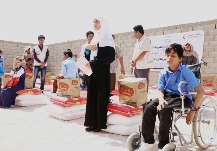 قامت هيئة الهلال الأحمر الإماراتي، صباح اليوم الخميس، بتقديم مساعدات إغاثية تحتوي على مكونات الغذاء الرئيسية لذوي الاحتياجات الخاصة والعاملين في مركز تأهيل ورعاية المعاقين ومركز التوحد والعلاج الطبيعي بمحافظة شبوة.