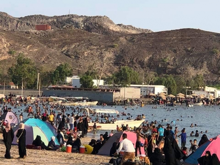 توافد عدد من المواطنين عصر اليوم الجمعة، على شاطئ "جولد مور" في مديرية التواهي بالعاصمة عدن .