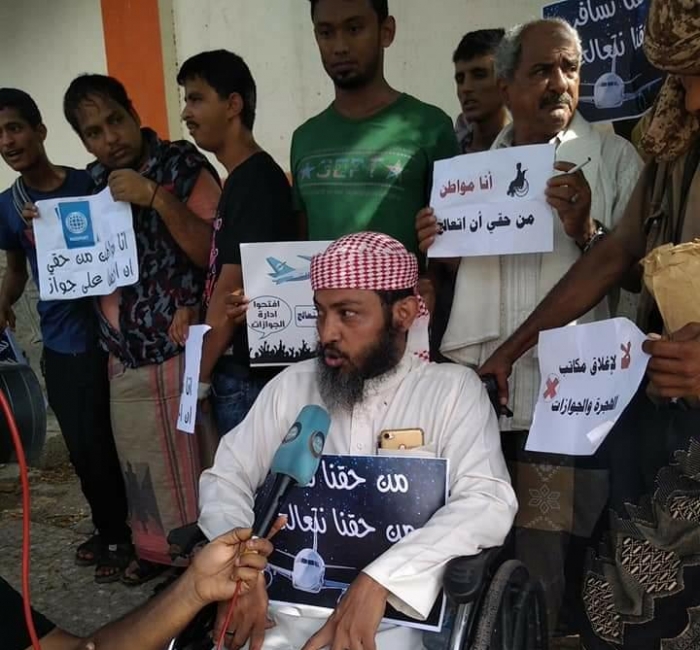 ودعا الجرحى والمرضى إلى سرعة استئناف العمل في مبنى الهجرة والجوازات، ليتمكنوا من السفر لتلقي العلاج اللازم في الخارج، بعد أن استعصت علاجها في المستشفيات في عدن.