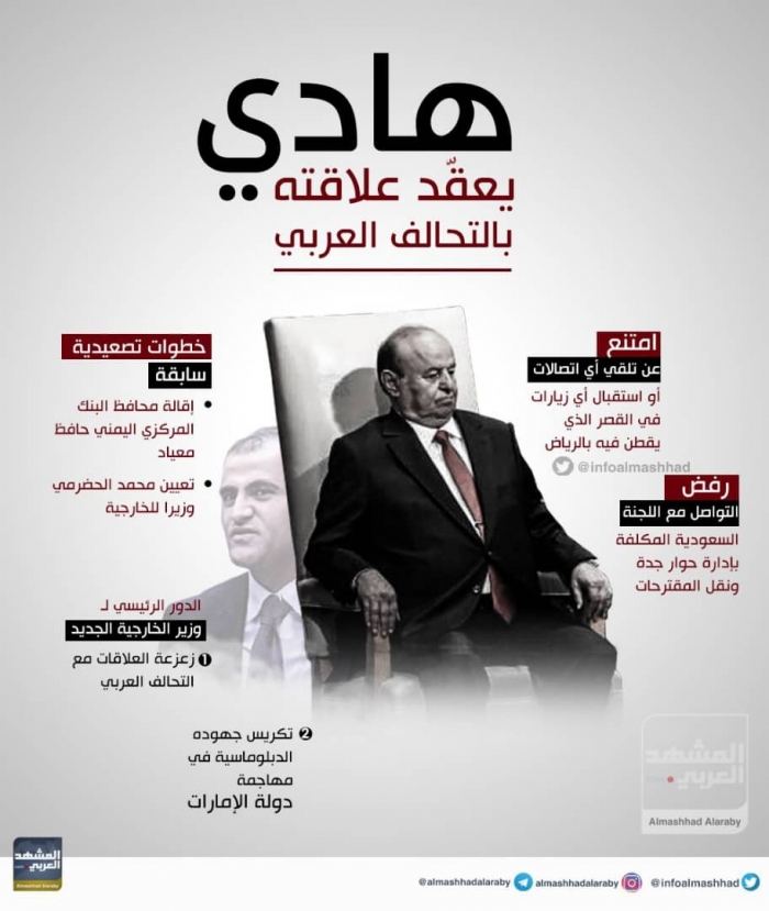 هادي يواصل تعقيد علاقته مع بلدان التحالف العربي (إنفوجراف)