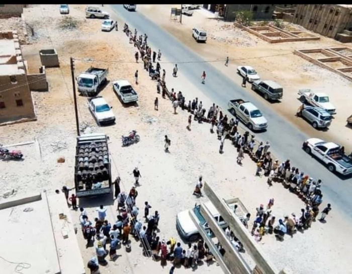 نشر الكاتب الصحفي ياسر اليافعي، اليوم، صورة لأبناء محافظة شبوة، وهم يقفون طابورًا لانتظار دورهم في شراء أنابيب الغاز.