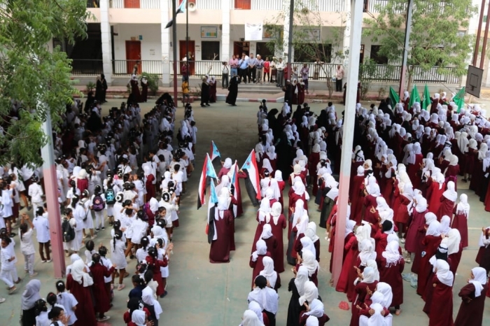 فيما قامت طالبات مدرسة الصديق برفع علم الجنوب على سارية الثانوية، وقمن بترديد النشيد الوطني الجنوبي في طابور الصباح.