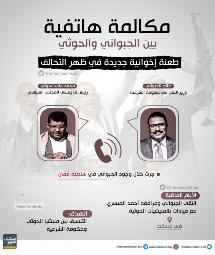 طعنة إخوانية جديدة في ظهر التحالف بعد مكالمة هاتفية بين الجبواني والحوثي (انفوجرافيك)