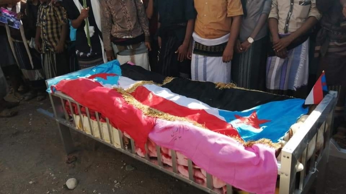 وكان قد استشهد الشهيد القميشي أمس الخميس، برصاص مليشيا الإخوان خلال مشاركته في تظاهرة سلمية بعزان.