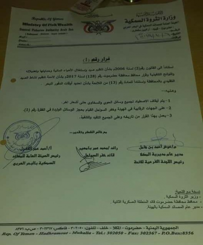 من جانبه أصدر مكتب وزارة الثروة السمكية قرارًا بإيقاف الصيد لجميع وسائل الحوي والسخاوي.