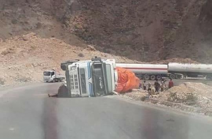 شهد الطريق الدولي الرابط بين مدن وادي وساحل حضرموت، اليوم الأحد انقلاب قاطرة في عقبة عبدالله غريب.