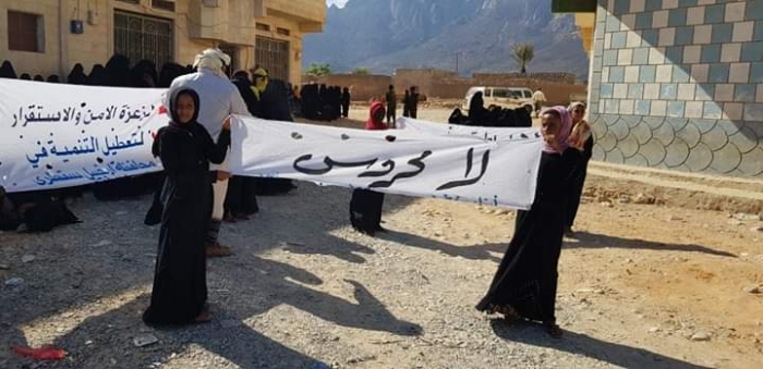 ورددت المسيرة النسائية هتافات تطالب برحيل المحافظ الإخواني محروس، ورافضة لسياسية مليشيات الإخوان التي تحاول جر الجزيرة المسالمة، إلى أتون صراع مسلح بين أبناء المحافظة .