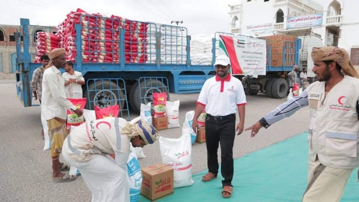 في إطار جهودها الخيرية والإنسانية، وزعت هيئة الهلال الأحمر الإماراتي اليوم الثلاثاء، عددا من المساعدات الغذائية في مديرية المكلا محافظة حضرموت.