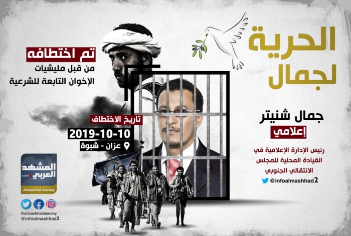 جمال شنيتر.. إعلامي جنوبي مختطف لدى مليشيات الإخوان (إنفوجراف)