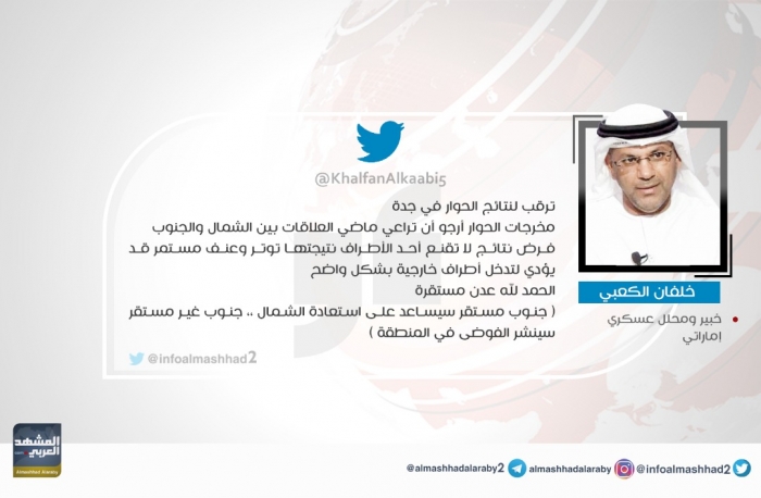 طالب الخبير العسكري الإماراتي خلفان الكعبي، بأن تراعي نتائج الحوار في جده ماضي العلاقات بين الشمال والجنوب.