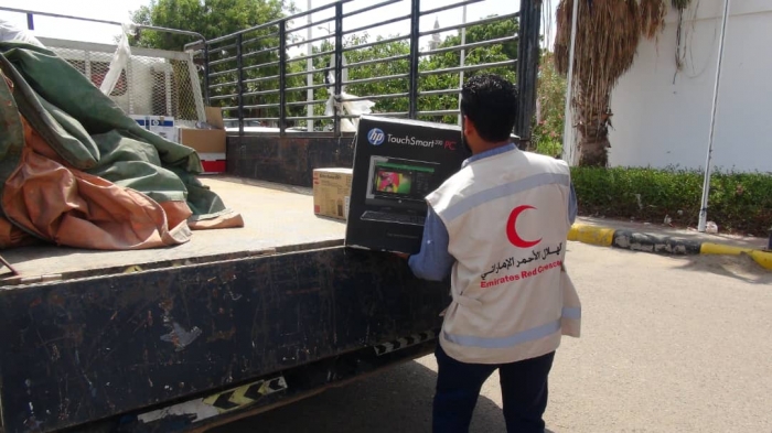 قدم الهلال الأحمر الإماراتي اليوم الأحد، عدداً من أجهزة الكمبيوتر والطابعات والمستلزمات الإلكترونية وأدوات ربط الشبكة لكلية التمريض بجامعة عدن.