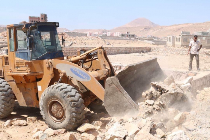 شهدت مديرية المكلا اليوم الخميس، تنفيذ حملة إزالات للعديد من أعمال البناء العشوائية بوحدة الربوة في حي خلف شرق مدينة المكلا.