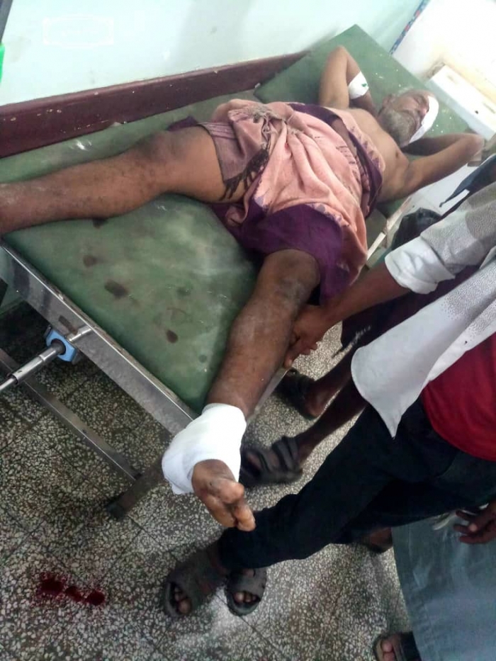 وأدى انفجار اللغم المضاد للمركبات إلى إصابة المواطن ـ عبده العفيف، سائق الحراثة 65 عامًا ونجله بدر عبده العفيف 10 سنوات.