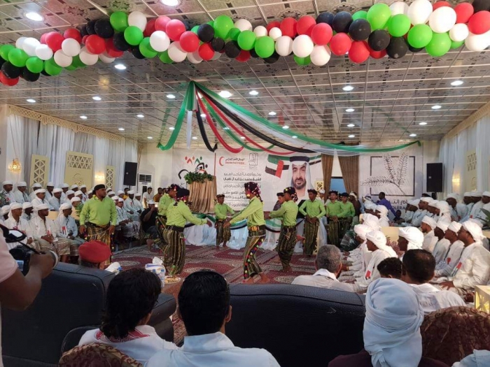 و أكد ممثل هيئة الهلال الأحمر الإماراتي بحضرموت السيد حميد الشامسي أن الأجواء السعيدة التي ستشهدها المكلا بزواج 200 عريس وعروس هي ضمن سلسلة من الأعراس الجماعية التي وجه بها صاحب السمو الشيخ محمد بن زايد آل نهيان ولي عهد أبوظبي ، لدعم استقرار الشباب وتعزيز النسيج الاجتماعي.