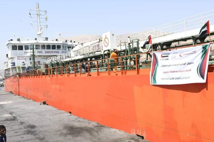 وأكد ممثل الهلال الأحمر الإماراتي السيد حميد الشامسي ، أن هذه الباخرة هي الرابعة على التوالي تحمل على متنها 13000 طن متري من المشتقات النفطية، لدعم كهرباء حضرموت، ولضمان عدم انقطاع التيار الكهربائي على المواطنين.