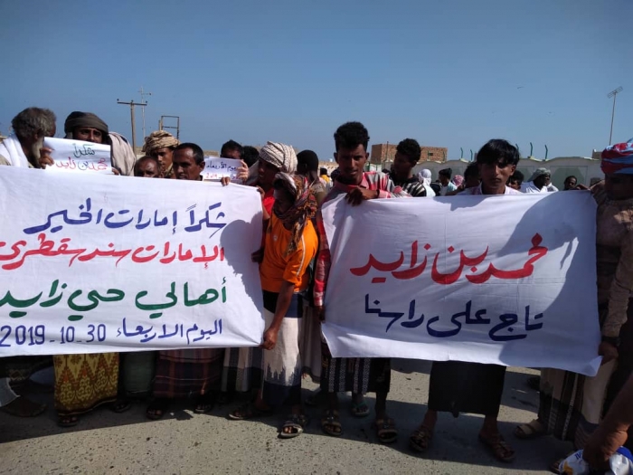 أهالي سقطرى يدخلون في اعتصام مفتوح للمطالبة برحيل رمزي محروس (صور)