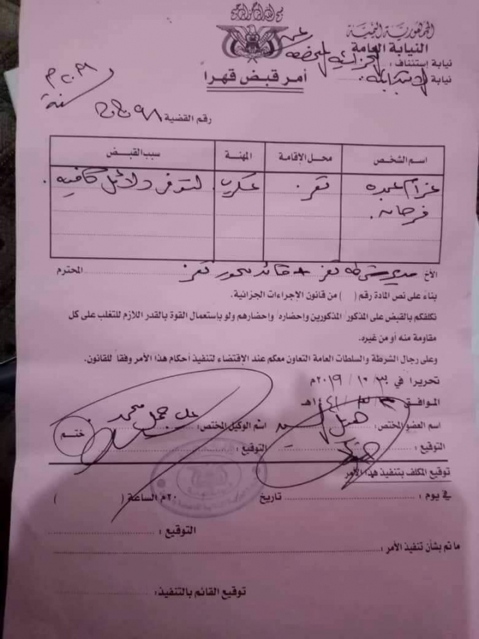 أمر بالقبض القهري على نجل قائد مليشيات الإخوان في تعز (وثيقة)