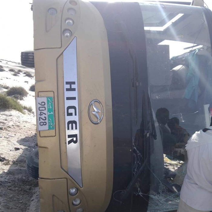 وتشير التفاصيل إلى أن باص كان قادماً من دولة الإمارات تعرض للانقلاب بالقرب من محطة عرقة خلال توجهه إلى العاصمة عدن.
