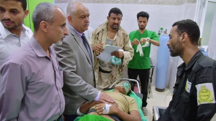 الوالي يطمئن على جرحى القوات الجنوبية من أبناء أحور في مستشفيات عدن