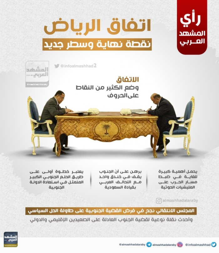 "الانفوجراف" التالي ، يسلط الضوء على أبرز النقاط التي تضمنها اتفاق الرياض بين حكومة الشرعية والمجلس الانتقالي.