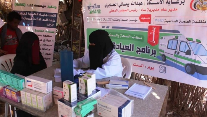 وتنفذ أعمال العيادة الطبية، منظمة الصحة للتغذية والتنمية " هاند " بإشراف مكتب وزارة الصحة والسكان بساه ضمن مشروع حزمة الحد الأدنى للخدمات الصحية .