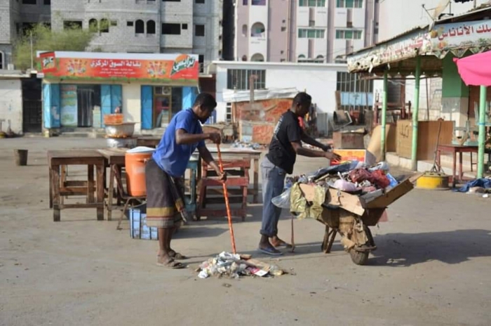 حملة نظافة واسعة للسوق المركزي بالمكلا