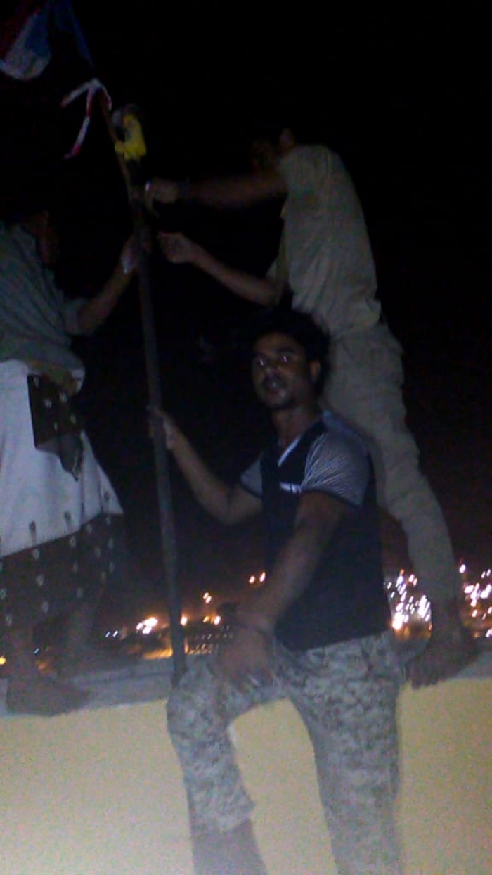 رفع أبطال اللواء الخامس، علم الجنوب، أعلى مصنع الأسمنت الواقع في سيلة بله في محافظة لحج.