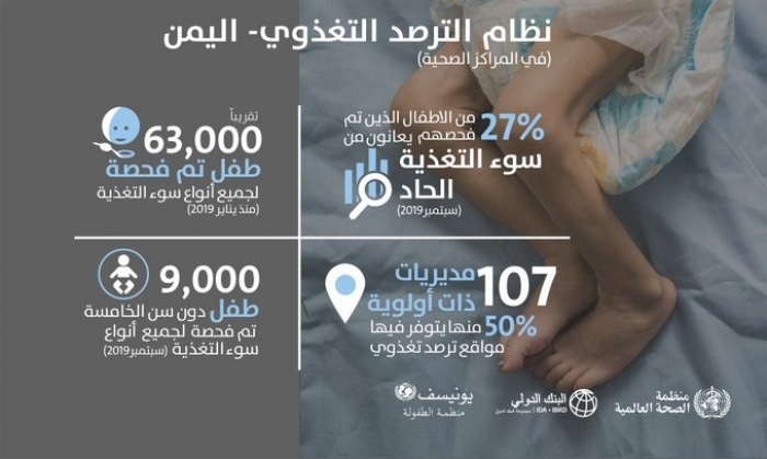 نشرت منظمة الصحة العالمية، إحصائيات جديدة لنظام الترصد التغذوي تكشف حجم معاناة الأطفال في اليمن من سوء التغذية.