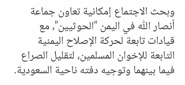 نشر رئيس دائرة العلاقات الخارجية للمجلس الانتقالي الجنوبي في أوروبا، أحمد عمر بن فريد، جزء من الوثيقة المسربة للاجتماع السري ما بين تنظيم الإخوان وفليق القدس الإيراني.