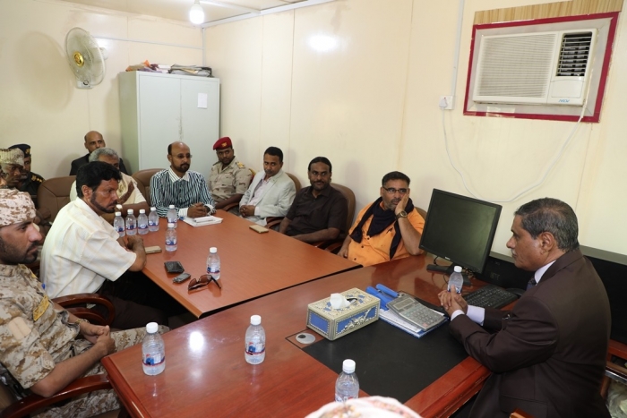 وخلال الزيارة رأس المحافظ اجتماعاً بالسلطة المحلية بالمديرية وإدارة الميناء والجمارك والجودة والمقاييس والأمن وخفر السواحل .