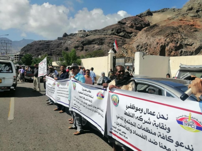 موظفو نفط عدن يتظاهرون أمام محكمة نظر دعوى استعادة كالتكس (صور)