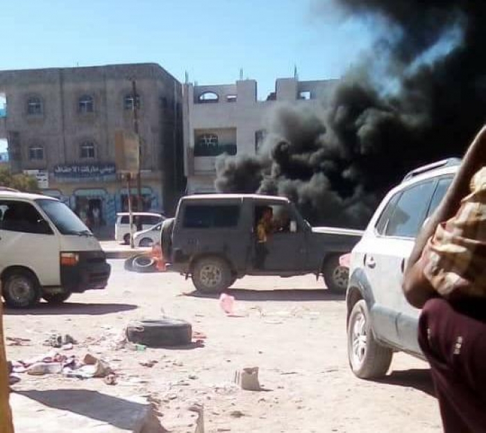 قطع جنود الأمن العام، منذ قليل، الطريق العمومي أمام مصرف الكريمي، احتجاجا على وقف اللجنة الأمنية التابعة لمليشيا الإخوان التابعة للشرعية في شبوة، صرف رواتبهم