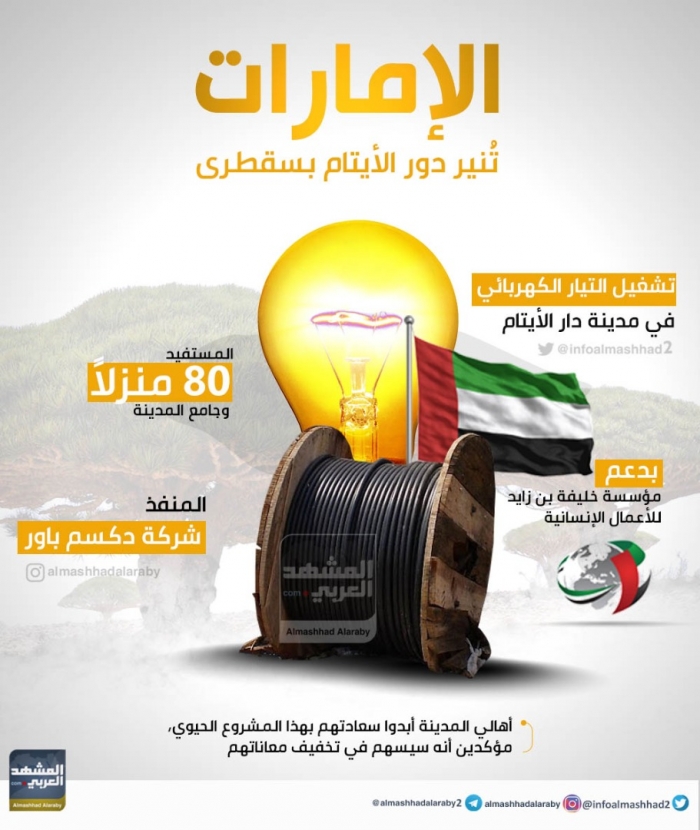 الإمارات تُعيد الحياة إلى دار الأيتام بسقطرى وتزودها بالكهرباء (إنفوجراف)
